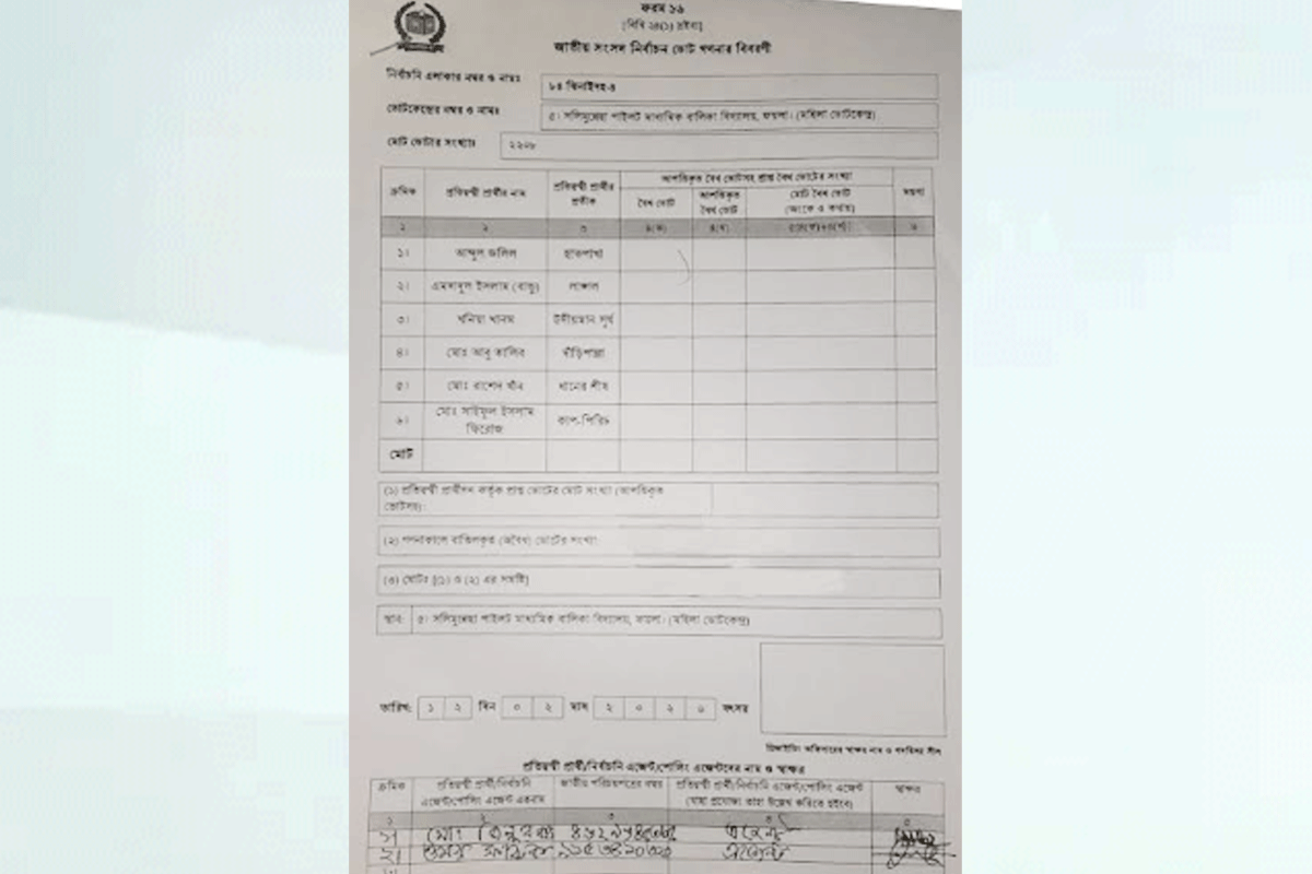 এক্সিকিউটিভ ম্যাজিস্ট্রেট সেলিম রেজা বলেন, দাঁড়িপাল্লা প্রতীকের একজন পোলিং এজেন্টের স্বাক্ষরিত ২৩টি রেজাল্ট শিট উদ্ধার করা হয়েছে। সেগুলো তাৎক্ষণিকভাবে ছিঁড়ে ফেলা হয়েছে। প্রিজাইডিং অফিসারকে নতুন রেজাল্ট শিট প্রস্তুতের নির্দেশ দেওয়া হয়েছে। এছাড়া প্রয়োজনীয় ব্যবস্থা নিতে বলা হয়েছে।