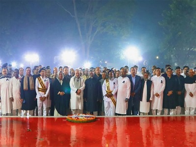 এরপর বিরোধীদলীয় নেতা ও জামায়াতে ইসলামীর আমির শফিকুর রহমান ১১ দলীয় নির্বাচনী ঐক্যের নবনির্বাচিত সংসদ সদস্যদের সঙ্গে নিয়ে শ্রদ্ধা জানান। এ সময় তার সঙ্গে জামায়াতের কেন্দ্রীয় নেতারা এবং জাতীয় নাগরিক পার্টির (এনসিপি) আহ্বায়ক নাহিদ ইসলাম ও সদস্যসচিব আখতার হোসেনসহ অন্য নেতারা উপস্থিত ছিলেন। এ ছাড়া বাংলাদেশে নিযুক্ত বিভিন্ন দেশের রাষ্ট্রদূত, হাইকমিশনার ও কূটনীতিকরা পর্যায়ক্রমে পুষ্পস্তবক অর্পণ করেন।