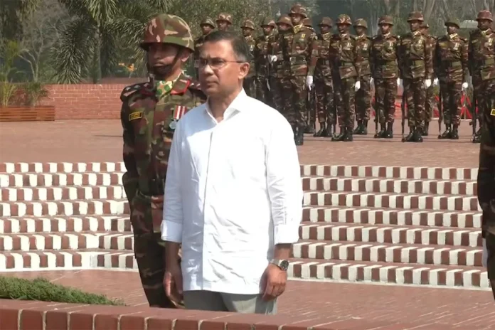 সাভারের জাতীয় স্মৃতিসৌধে একাত্তরে মুক্তিযুদ্ধে বীর শহীদদের প্রতি শ্রদ্ধা নিবেদন করেছেন প্রধানমন্ত্রী তারেক রহমান। আজ বুধবার সকালে সাভারের জাতীয় স্মৃতিসৌধে তিনি শ্রদ্ধা নিবেদন করেন।